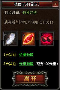 单人绑金副本地图共有一张,等级50级的时候可接,每日免费赠送2次机会,也可以用元宝购买最高两次进入机会,每杀一只怪均可获得超高的绑金奖励,清理完地图内怪物后还可在右边导航栏处领取奖励。